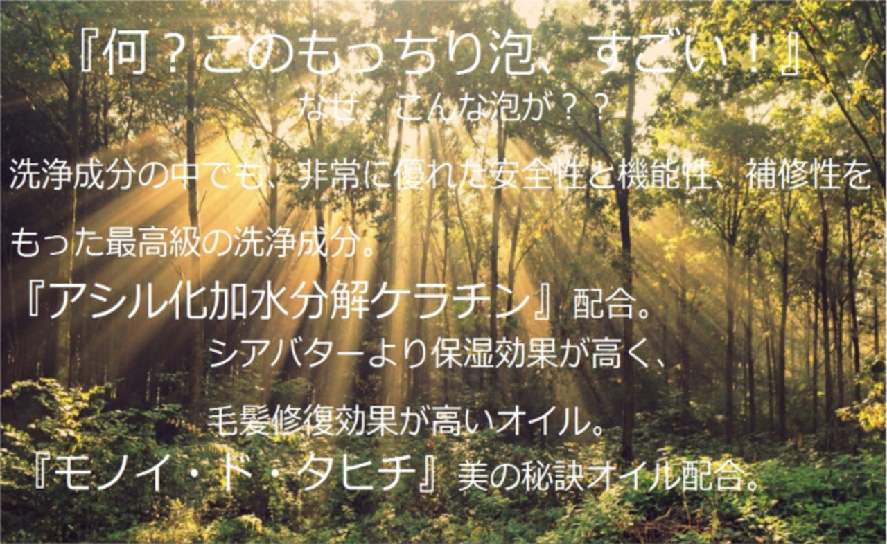 毛髪の主成分はケラチンタンパク質でできています。ケラチンタンパク質は約18種類のアミノ酸からできており、シスチンを多く含んでいます。その結果、毛髪に弾力性や強度を持たせています。しかし、ケラチンタンパク質はパーマ、ヘアカラー、ドライヤーの熱、紫外線などの厳しい環境にさらされ、流出する事で毛髪は弾力性、強度、ツヤなど髪本来の美しさが失われます。しかし、当商品は洗浄成分が「毛髪の主成分ケラチン」で髪を洗うため、毛髪の補修効果が高く、髪本来の強度や柔軟性を取り戻し、健康な毛髪へと導いてくれます。
